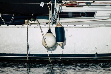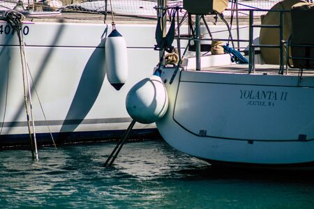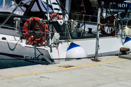 Limassol Cyprus May 21, 2020 Closeup of a boat moored in the marina of Limassol in Cyprus island
