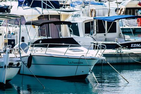 Limassol Cyprus March 17, 2020 Closeup of boats moored in the marina of Limassol in the afternoon