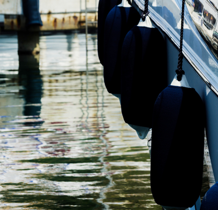 Buoy hanging outside the hull of the boat, boat equipment, safety at sea