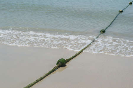 White sand beach with sea white and the old buoys on Phuket beach,Thailand