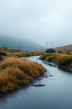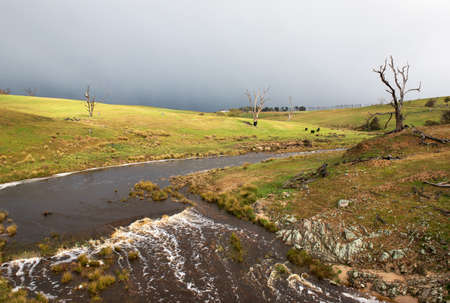 Australian countryside landscape in winter, the bush of Tasmania in the Houn Valley