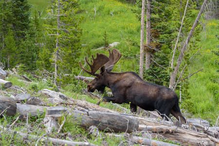 Colorado Bull Moose Living in the Wild Rocky Mountains