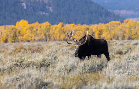 bull moose in sagebrush meadow autumn