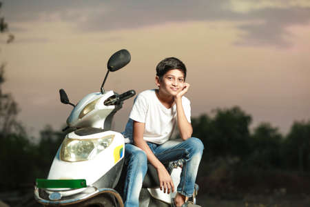 Nakhon Ratchasima, Thailand - June 09, 2020 : Portrait shot of Vespa Motobike close up mileage needle on greensward ,Nakhon Ratchasima Thailand.