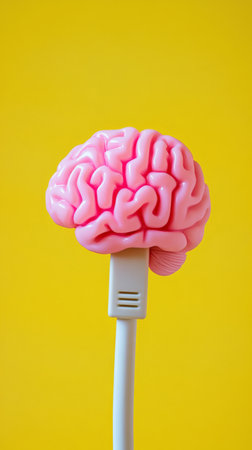 Top view of human brain model with USB cable, on light background. Turn on your brain. Creative ideas. Generative AI.