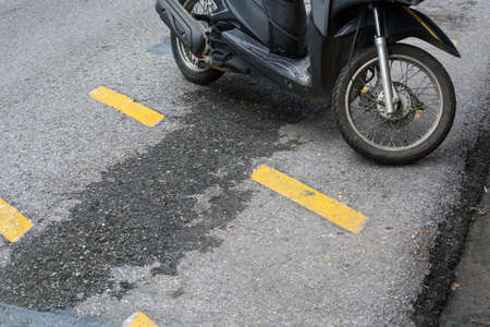 blur motor cycle parking on street near green tree wall