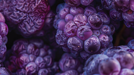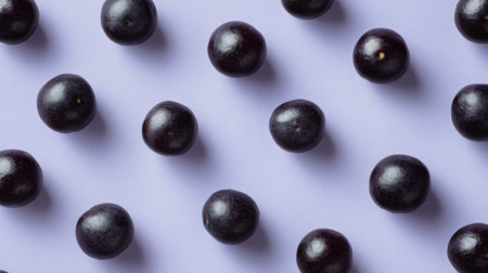 A stunning display of fresh dark fruits set against a soft purple backdrop, creating an eye-catching geometric arrangement that emphasizes natural beauty and health.