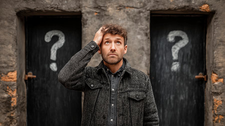 Man with question mark on his face. Conceptual image of problem solving.