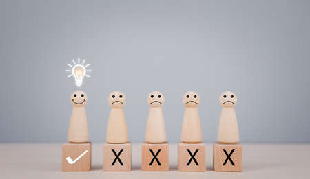 Problem solving. Right and wrong way icons on work desk from above