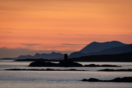 Scenic view of the Kyle Rhea, a strait splitting Skye from the Scottish mainland near Kylerhea village on the east coast of the Isle of Skye, in the Scottish Highlands