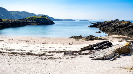 Scenic Beach With White Sand And Green Ocean Water In Scotland
