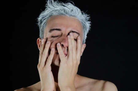 Conceptual portrait with man surrounded by his multiple personalities. Depressed person with multiple personality disorder