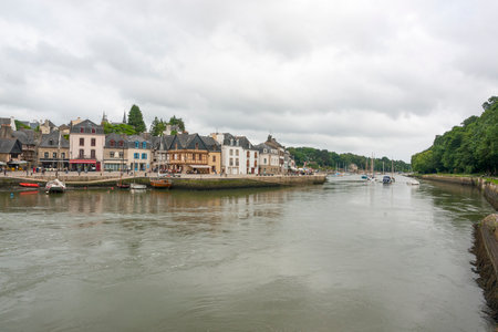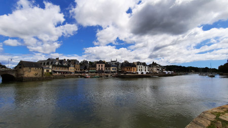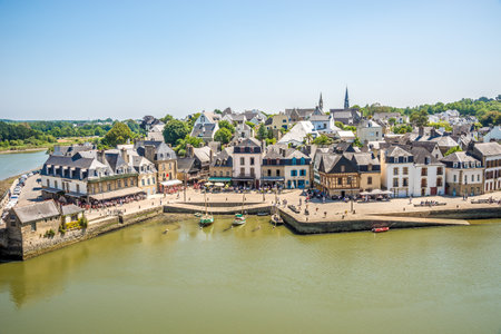 AURAY,FRANCE - JUNE 1,2023 - View at the Old town with waterfront of Auray. Auray is a commune in the Morbihan department, administrative region of Brittany, northwestern France.