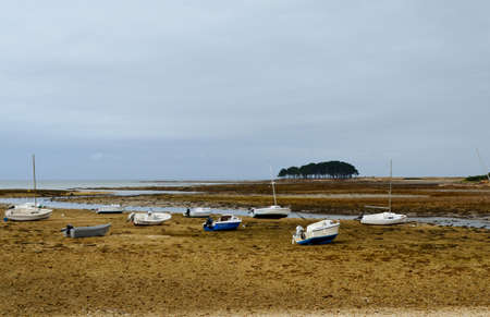 Boats on Bender Island in the Gulf of Morbihan. France.