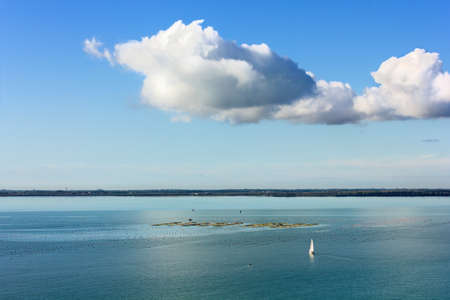 Picture of boat, sailing at the sea near the coast of the golfe de Morbihan. France.