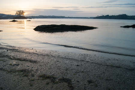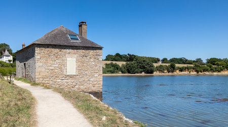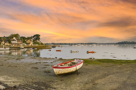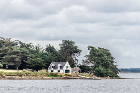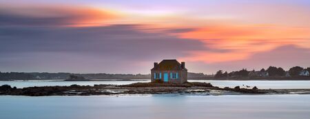 The house of Saint-Cado in Brittany, on the Etel river, at sunset