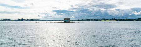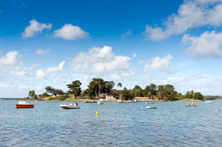 Boedic island, with the chapel, in the Morbihan gulf, on the coast