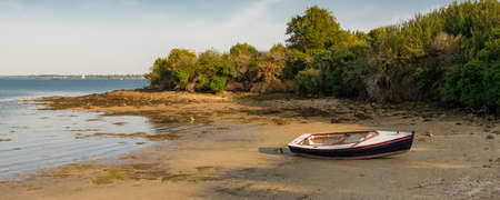 Brittany, Ile-aux-Moines island at sunrise, with a wooden row boat
