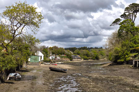 HELSTON, CORNWALL, UK - MAY 14 : Low tide in Helston, Cornwall on May 14, 2021. Unidentified people