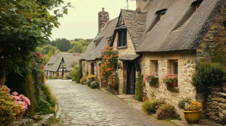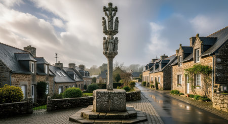 Explore the historical charm of Locronan with its thatched cottages, cobblestone paths, and colorful flower boxes, surrounded by the serene Brittany countryside.