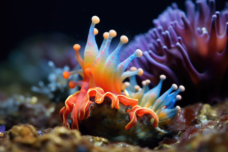 close-up of a colorful sea anemone in coral reef, created with generative ai