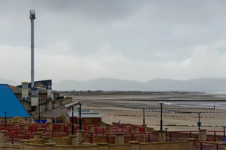 Looking along the promenade and beach front of Rhyl, North Wales on a grey winters day.