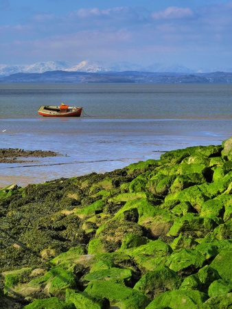 view across morcambe bay from grange over sands in cumbria with the south lake district visible in the distance