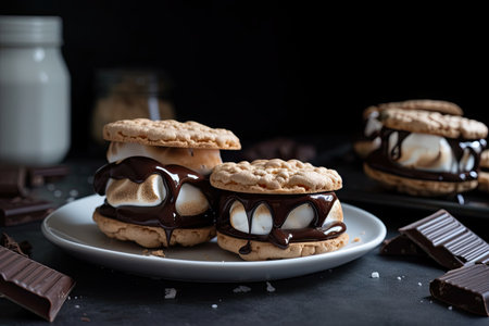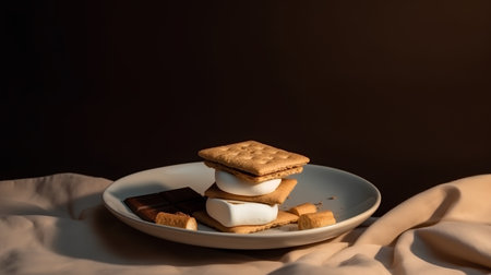 delicious smores stack on a plate, ready to be eaten, created with generative ai