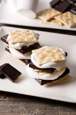 Sweet Homemade Chocolate Smores Dessert with Marshmallows