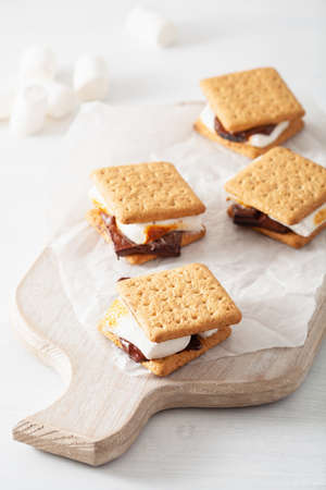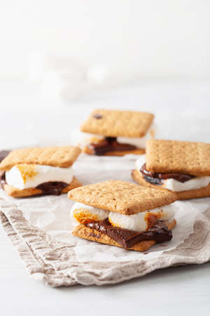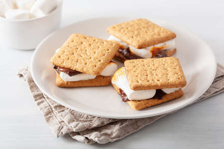 Homemade marshmallow s'mores with chocolate on crackers. Generative AI