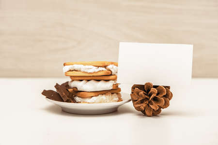 Smore - sweet dessert - cookies, chocolate and marshmallows - traditional dessert - card mock up