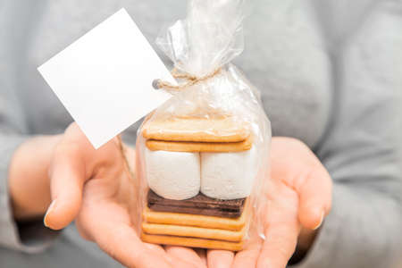 Smore - sweet dessert - cookies, chocolate and marshmallows - traditional dessert - square favor tag mockup
