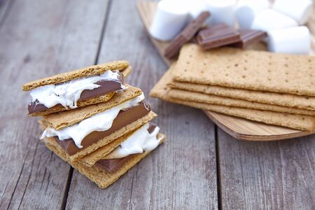 Homemade Smores with Marshmallows, Chocolate and Graham Crackers