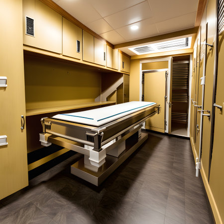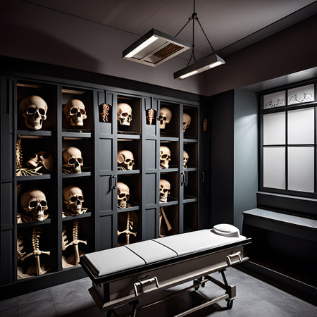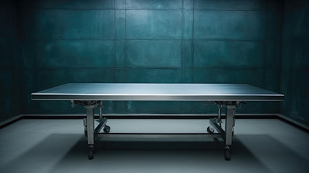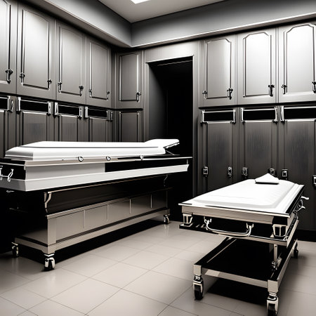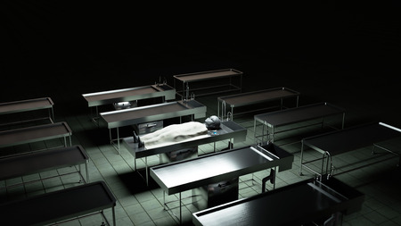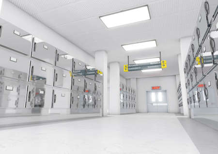 interior of a modern morgue, realistic illustration