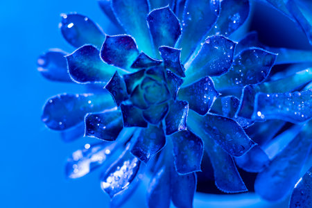 Succulents in macro detail. Indoor gardening. Sempervivum top view.