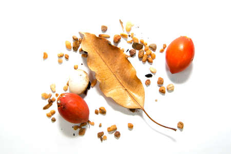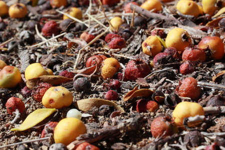 wild seeds and berries lying on the ground in different shades of brown and orange to be used as a background