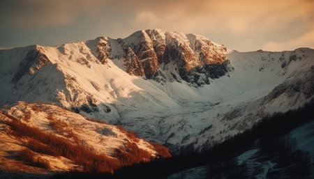 Tranquil mountain meadow frozen in winter majestic beauty at dawn generated by artificial intelligence