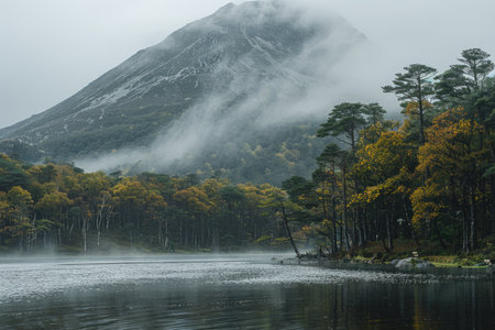 Beautiful landscape image of misty morning in the English Lake District