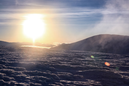 A beautiful sunrise in the winter mountains.