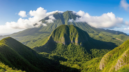 Beautiful mauntain landscape from Mauritius island on sunny day