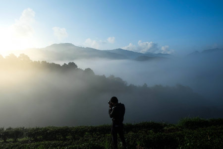 Tourist standing and enjoy the view on top of the mountains and sea of cloud.