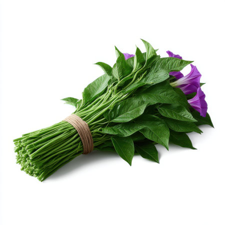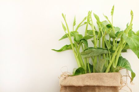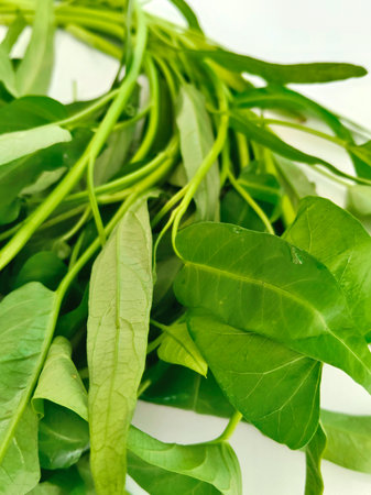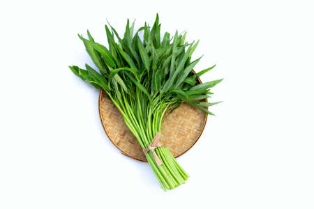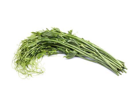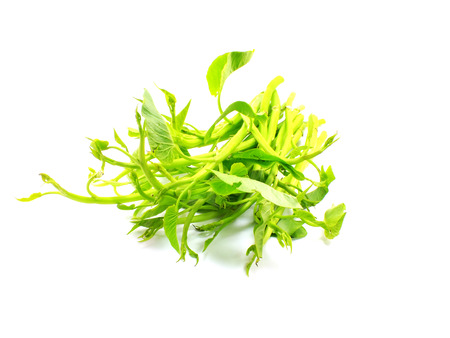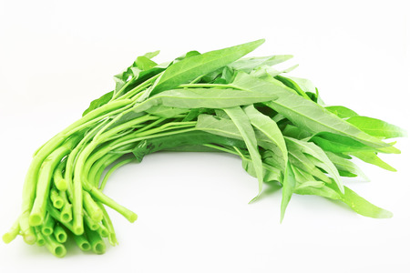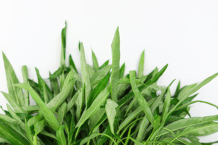 Fresh Water Spinach leaves on a white background. Studio shot.