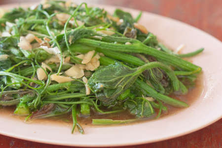 Stir-Fried Chinese Morning Glory or Water Spinach - Asian food style
