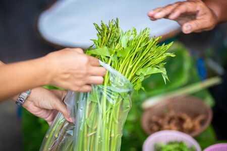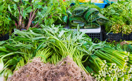 Greenery in the Vietnamese market. Asian cuisine concept.