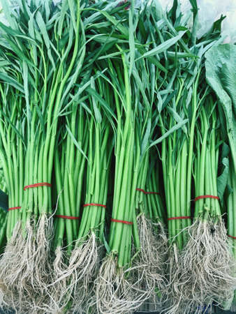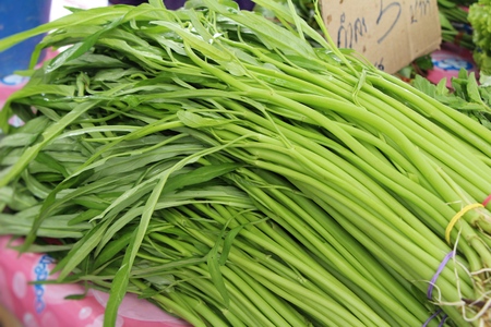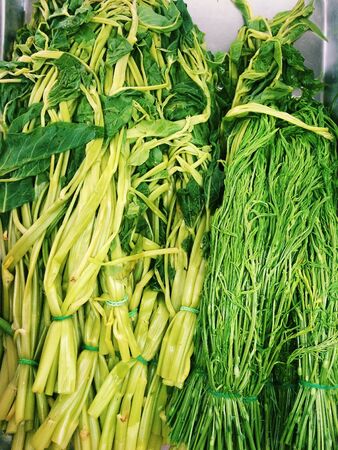 Vegetable and Herb, Pile of Water Spinach or Ipomoea Aquatica Selling at Fresh Market.