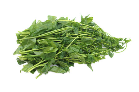 Organic Ceylon spinach or Malabar spinach vegetable isolated on white background. Concept, Thai local vegetables that useful, can be cooked in variety menu