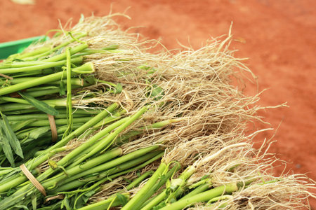 Chinese Spinach root or in Indonesia is called kangkung. white background
