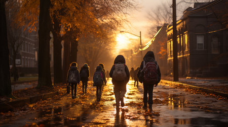 Silhouetted runners embrace a healthy lifestyle with a sunrise jog along the coast. The golden light reflecting on the wet boardwalk creates a serene and motivational scene, symbolizing fitness and wellbeing.