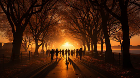 Men and women jogging in tranquil city landscape generated by artificial intelligence