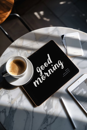 Good morning note and coffee in a cup